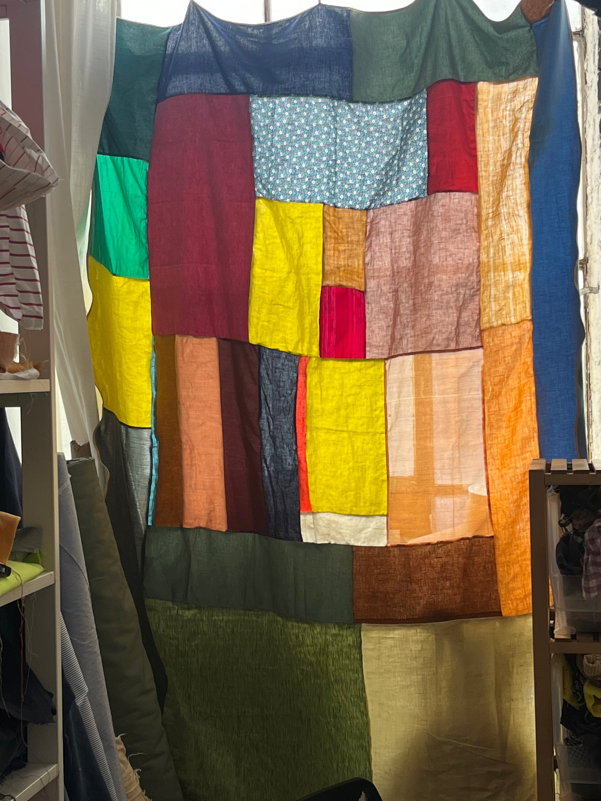 Sarah Nsikak is a Nigerian-American artist and designer living in Brooklyn, New York. Her love of textiles led her to working in the fashion industry after completing a Masters Degree in Art Therapy. The exorbitant waste generated in the fashion industry inspired a re-routing back to her art practice. These handmade pieces are created thoughtfully and through utilization of dead-stock, antique, and vintage textiles.